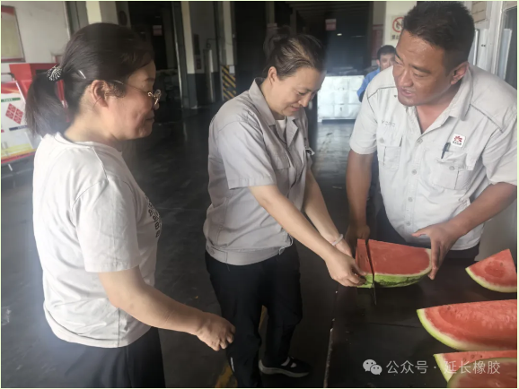 点击量:300近日,陕西地区持续高温,户外温度直逼 40℃。在这样的闷热天气中,延长橡胶公司的生产一线依旧呈现出一片繁忙的景象。原材料库的工作人员们始终坚守在库区的各个岗位上,全力保障全钢、半钢轮胎的生产供应,采供部更是针对性地开展了一系列 “送清凉” 活动,为一线人员注入夏日里的清凉动力。