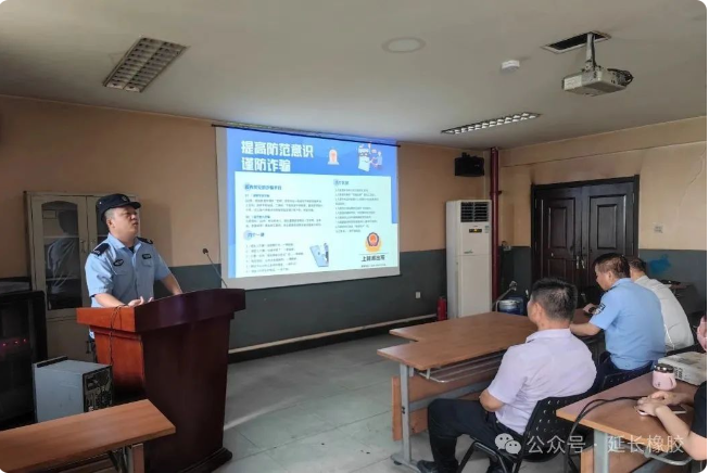 上林路派出所民警走进延长橡胶开展防诈骗知识讲座